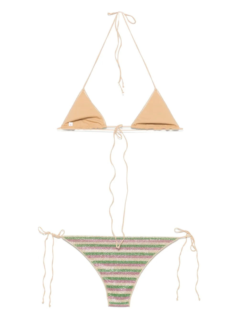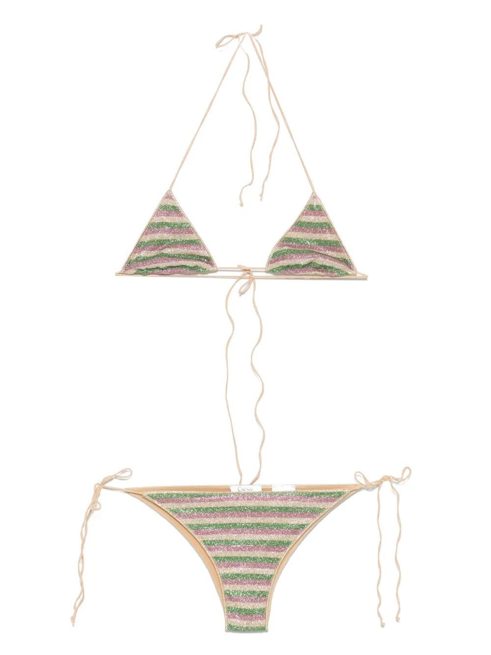 Get ready for the beach in style with our LOLITA BIKINI. The gold-tone accents add a touch of sophistication, while the colorful print is fun and eye-catching. With a convenient self-tie fastening and full lining, this bikini offers both fashion and function. Perfect for soaking up the sun.
