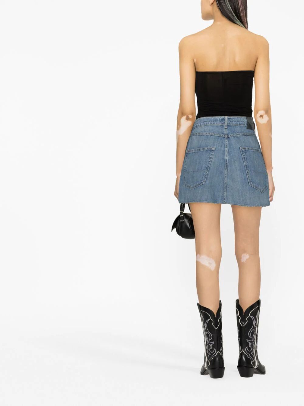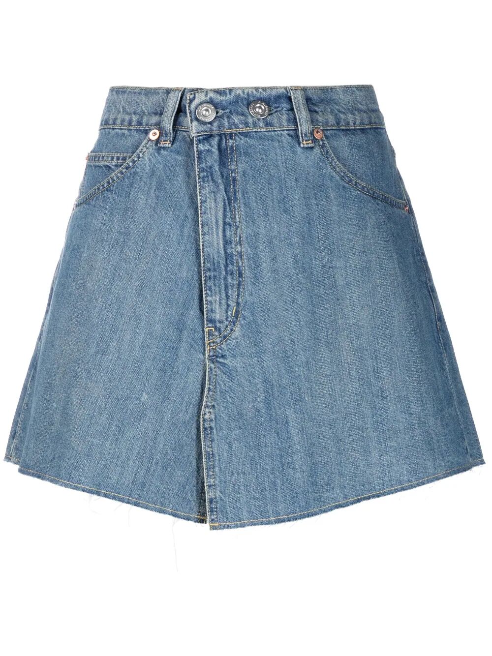 medium-wash denim skirt