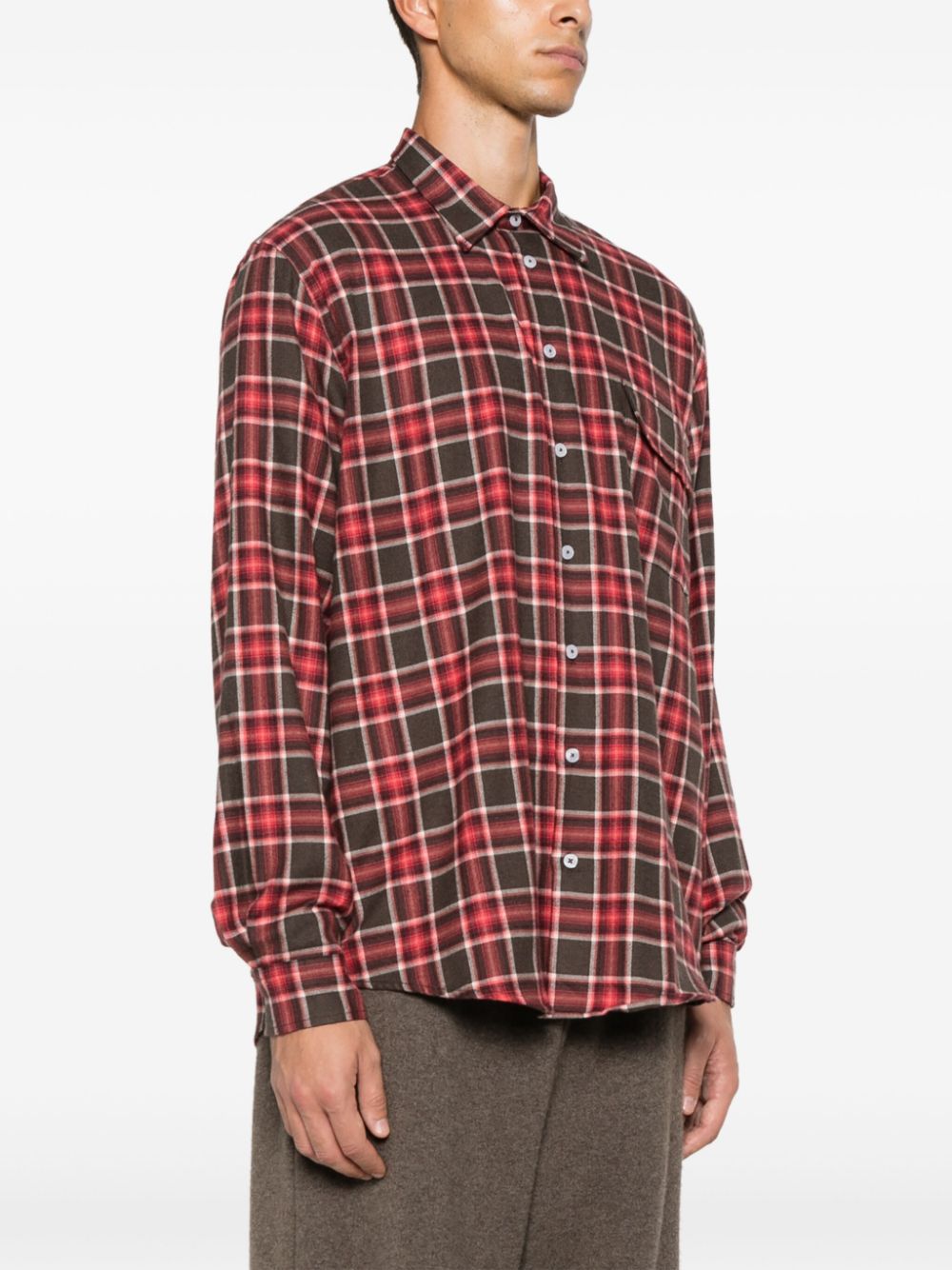 Stay stylish with the ZERIN SHIRT, featuring a bold crimson and multicolour check pattern. Made of soft cotton flannel, this classic collar shirt has a front button fastening, long buttoned-cuff sleeves, and a chest flap pocket. With a curved hem, it's the perfect combination of comfort and cool.