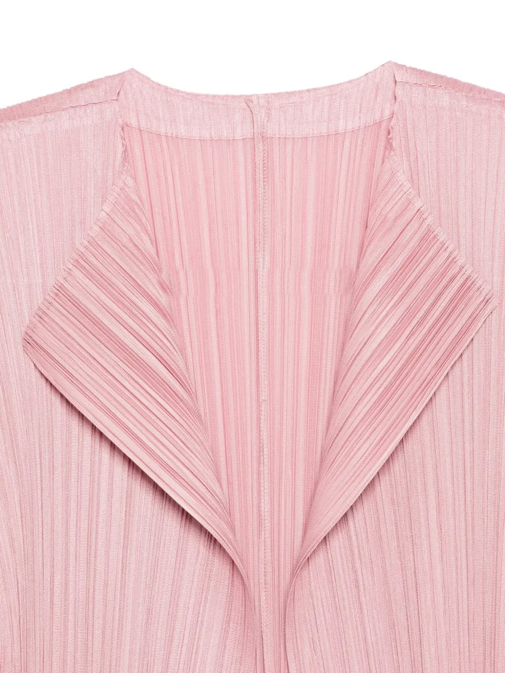 Effortless elegance in soft light pink. This plissé kimono drapes beautifully with its open front and long sleeves, creating a relaxed silhouette that works over everything. The delicate pleated texture adds subtle movement and visual intrigue. Versatile layering piece that brings understated sophistication to any look.