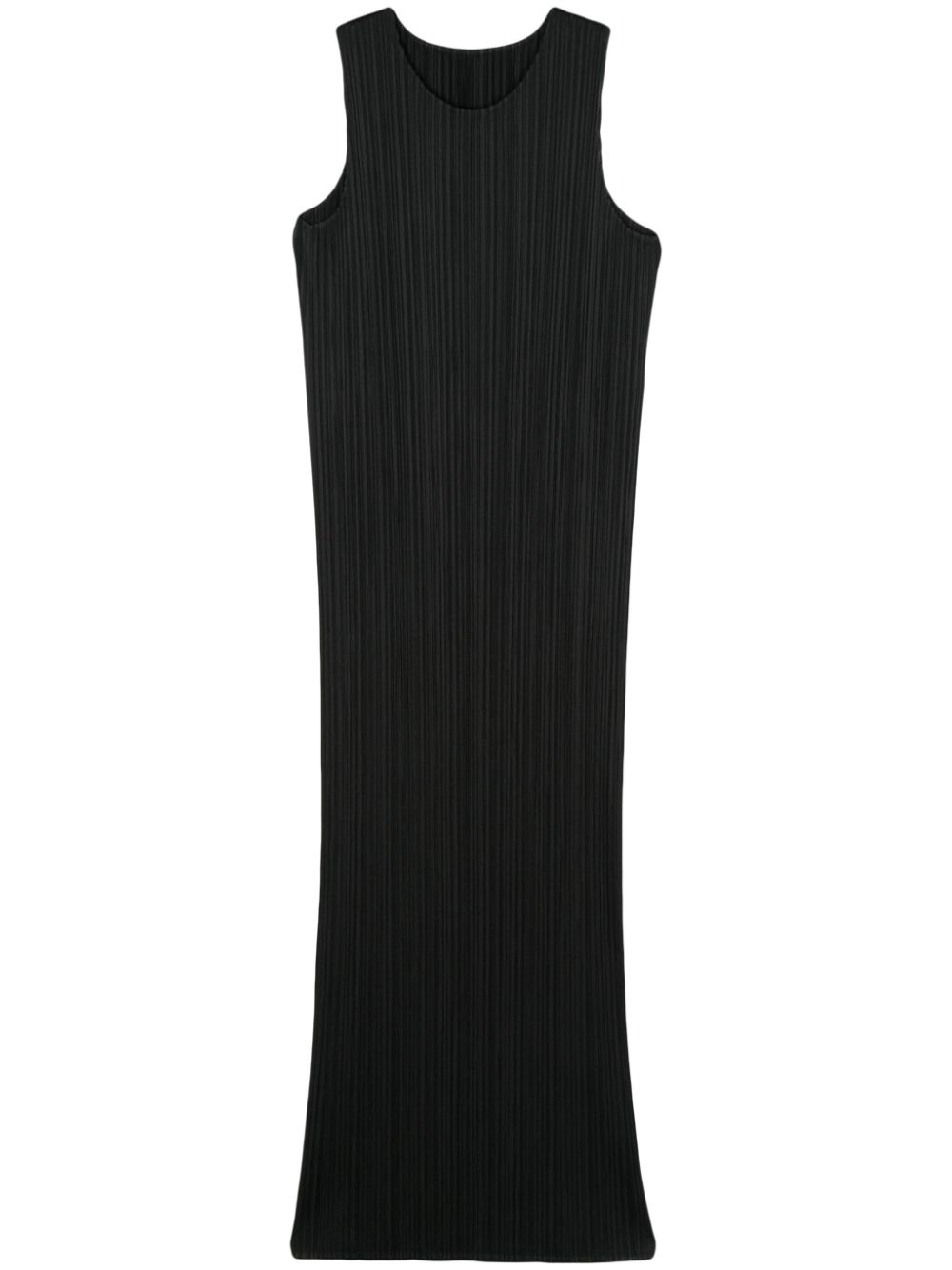 Elevate your style with this Pleated Sleeveless Dress from Issey Miyake Pleats Please. The refined design highlights your silhouette, while the high-quality material effortlessly forms into pleats. Versatile for any occasion, this dress is a unique and recognizable choice for elegant evenings or significant events. Available in black.