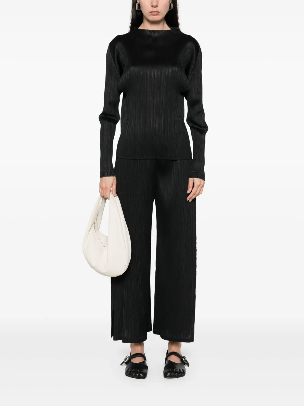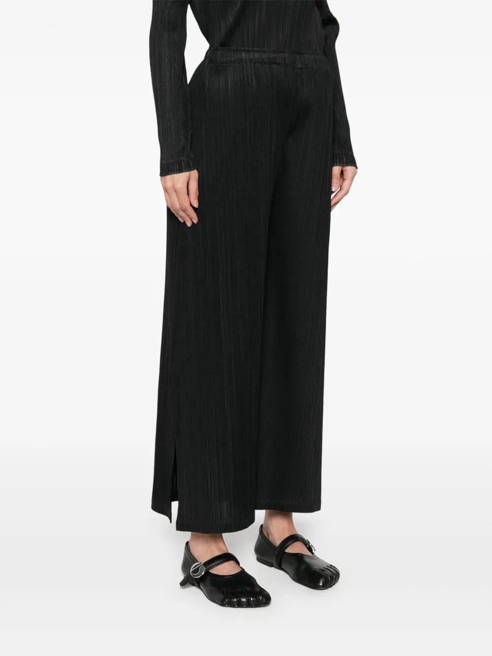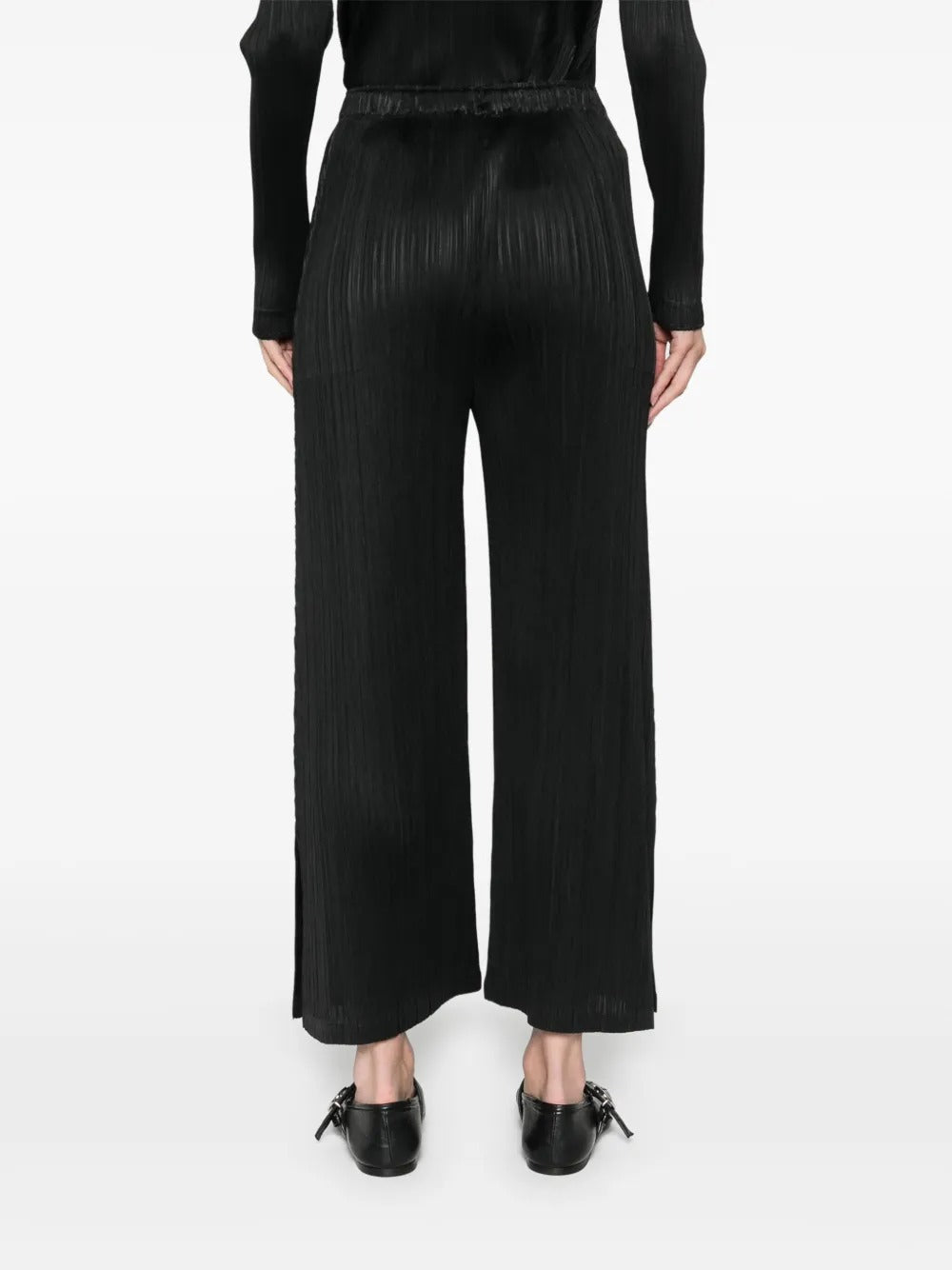 Be effortlessly chic in these pleated trousers. The elasticated waistband provides comfort while two side slit pockets add functionality. With a cropped leg and classic black color, these trousers elevate any outfit.
