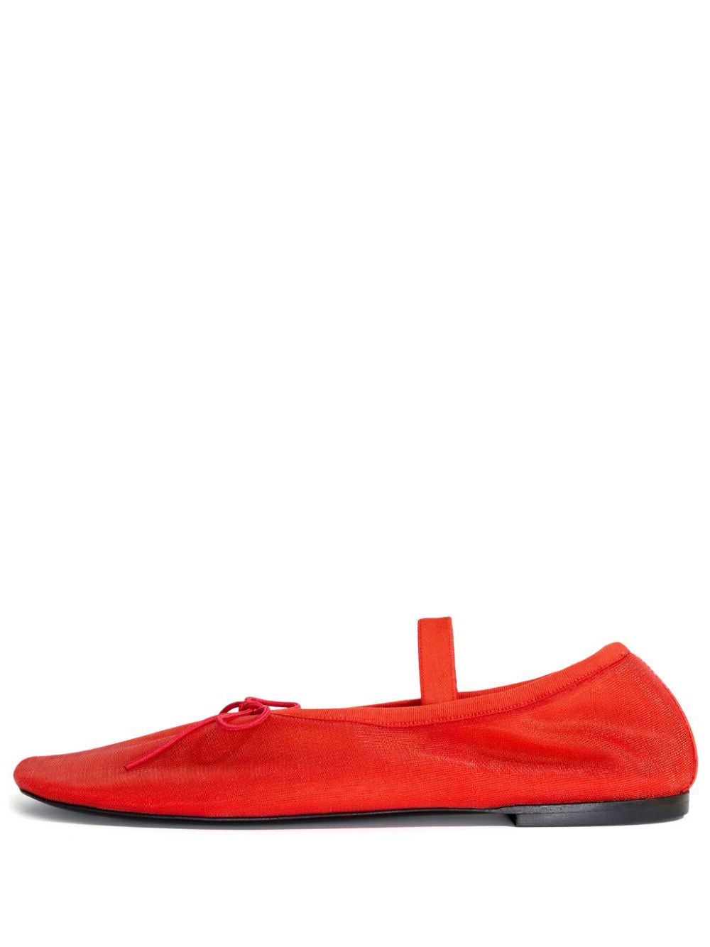 Step into style and comfort with our Glove Mary Jane Ballet Flats in Mesh. The semi-sheer mesh material hugs your feet for a perfect fit, while an elasticated top strap and dainty bow add a touch of elegance. Available in red Mesh with round toe for a chic look.