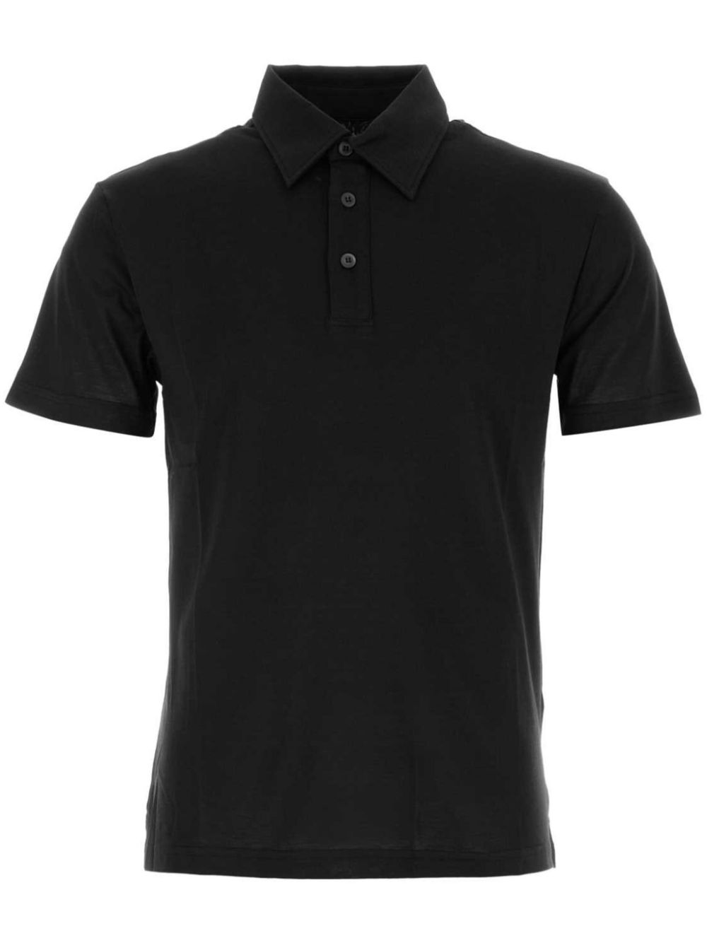 This 100% cotton polo shirt features a classic collar and partial button closure, perfect for any casual occasion. Available in sleek black. Made in Italy.