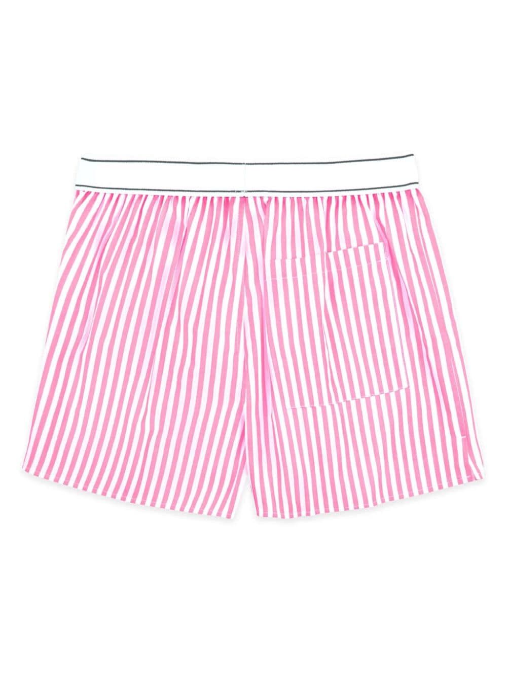 Elevate your underwear game with these pink and white striped cotton boxers. The elasticated logo waistband and rear patch pocket add a touch of quirk to your daily routine. The contrasting waistband brings a fun pop of color. Comfort and style all in one.