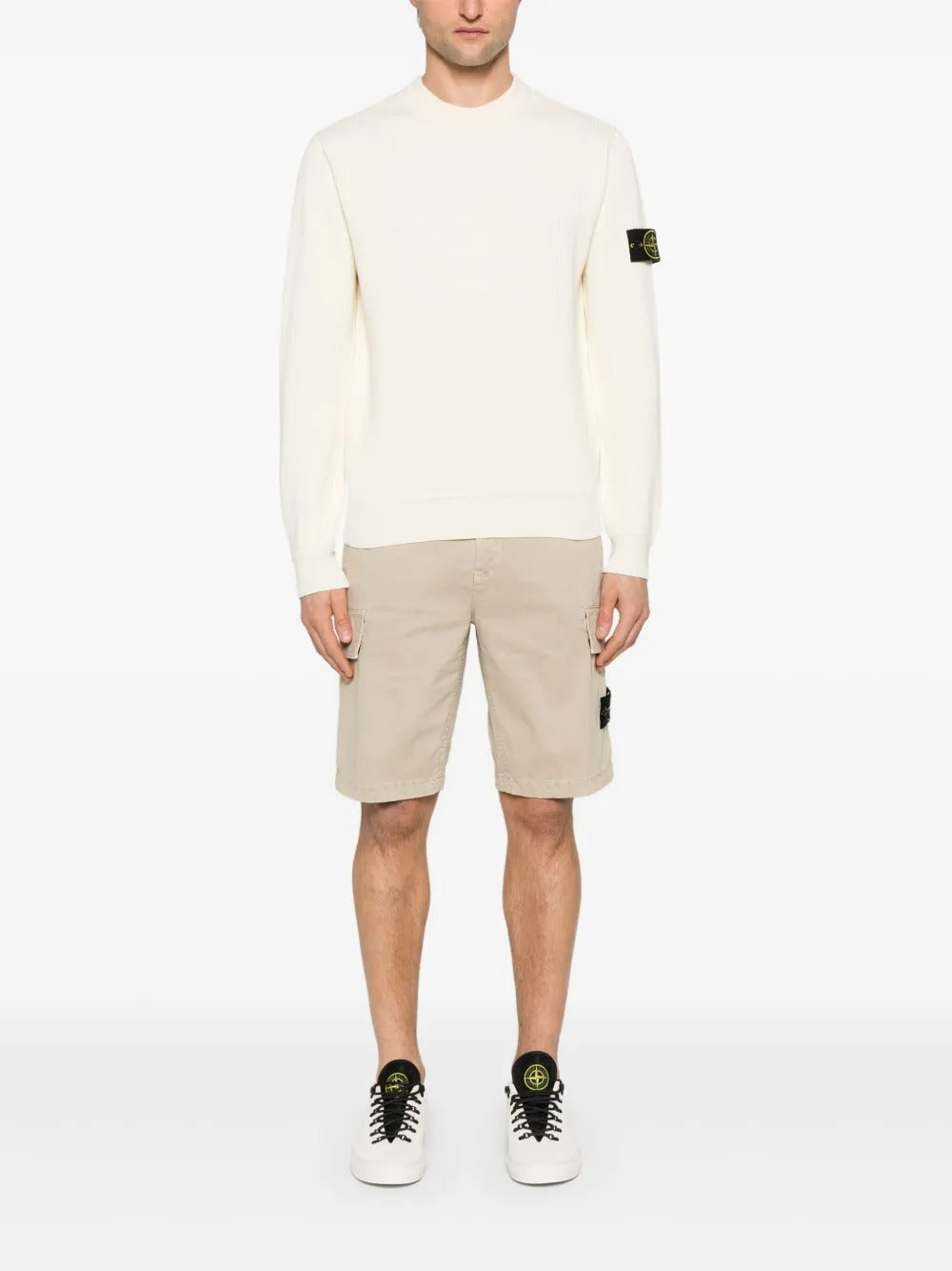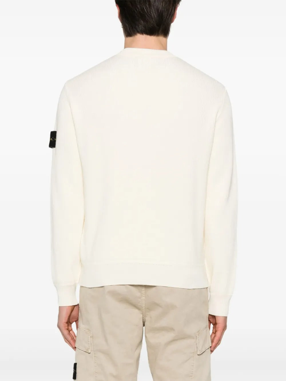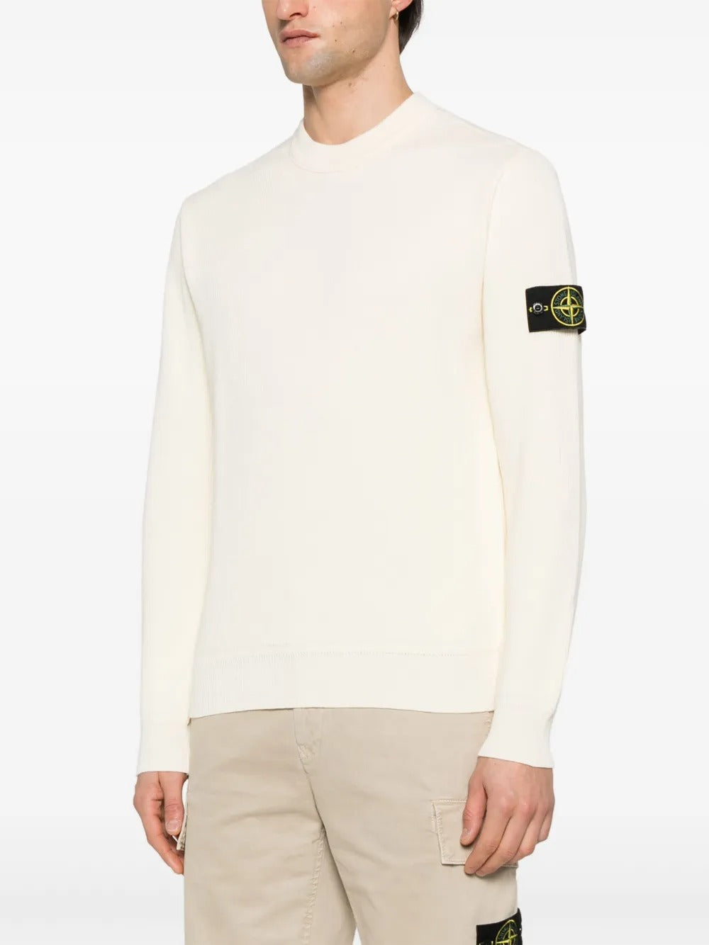 This ribbed knit sweater is perfect for those who like to explore new fashion territory. With its almond beige color and compass-badge detailing, this crew neck sweater will keep you cozy and stylish on all your adventures. So go ahead, get lost in style with this unique sweater.