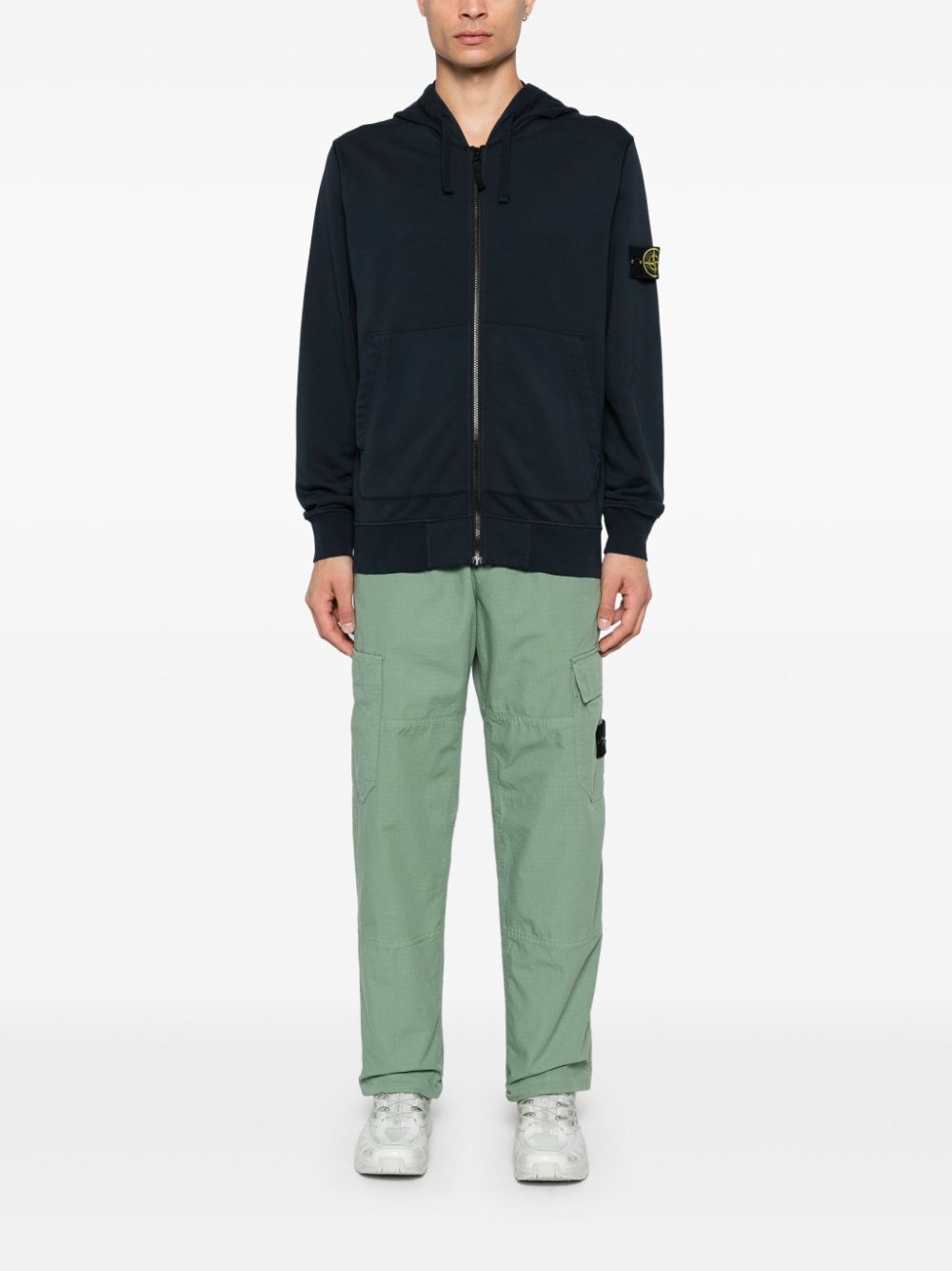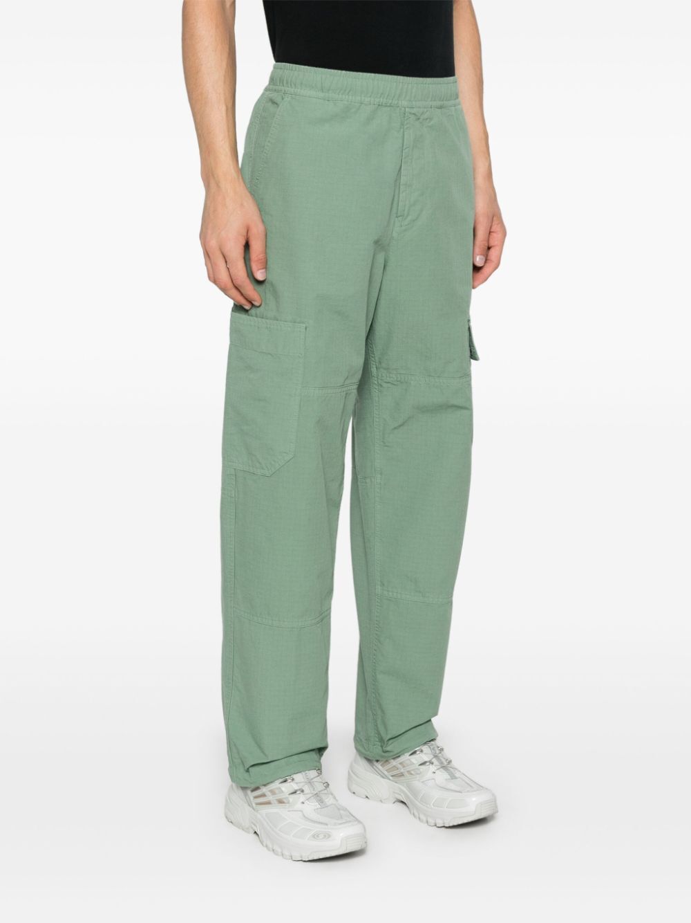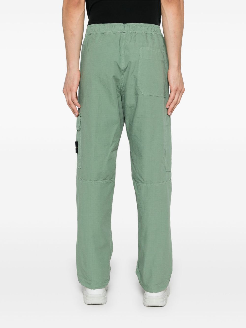 Add a unique twist to your wardrobe with these comfortable chino pants made from durable cotton ripstop fabric. Featuring a variety of pockets and an elastic waistband, these cargo pants from Stone Island offer both functionality and style. Perfect for on-the-go adventures or everyday wear.
