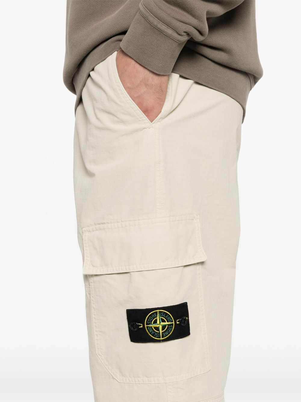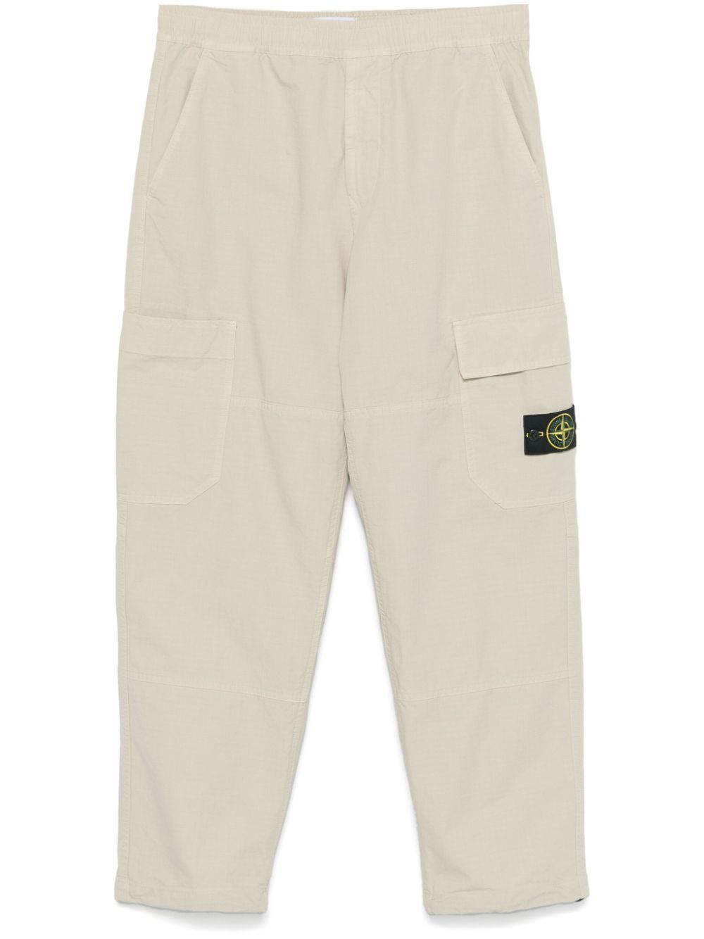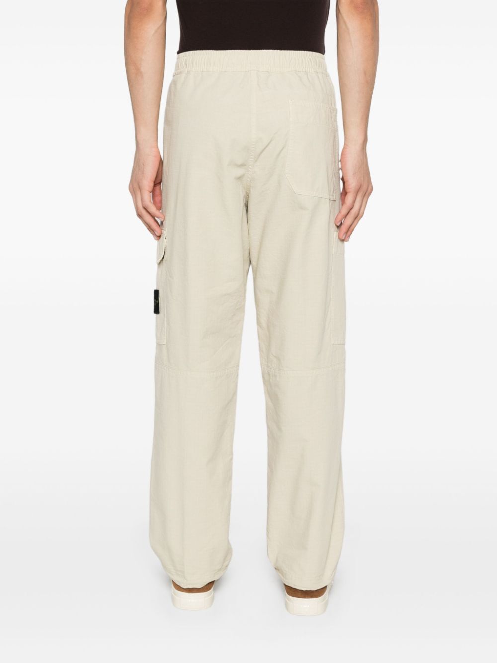 Add a unique twist to your wardrobe with these comfortable chino pants made from durable cotton ripstop fabric. Featuring a variety of pockets and an elastic waistband, these cargo pants from Stone Island offer both functionality and style. Perfect for on-the-go adventures or everyday wear.