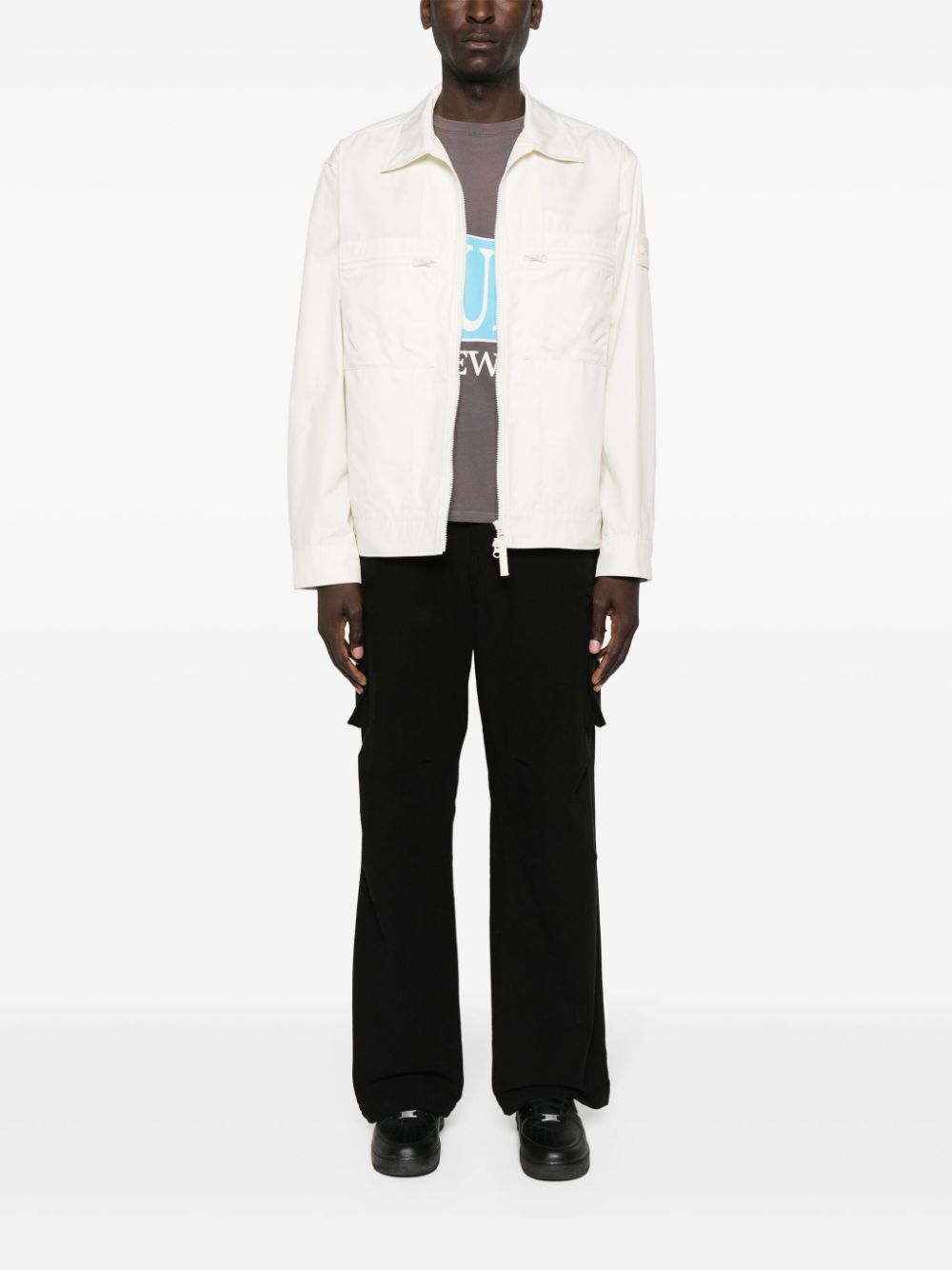 Ghost jacket in cotton fabric, front zip closure, chest pockets with zip, cuffs with press studs Stone logo patch on the removable single-color sleeve, characteristic of the ghost line.