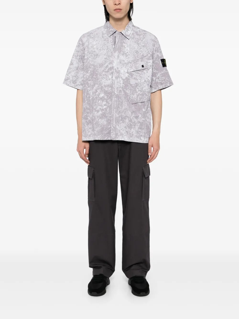 Add a pop of color with this light purple/grey short-sleeved shirt. The front zip fastening provides a unique touch, while the signature detachable Compass badge adds personality. Keep your essentials secure in the button-fastening chest pocket. The curved hem adds a stylish detail.