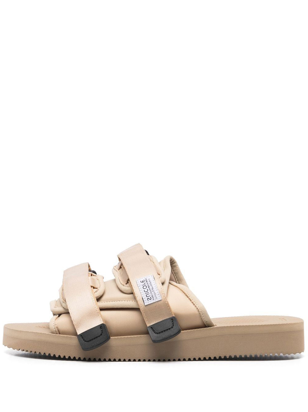 Step into style and comfort with our beige Moto-Cab rubber sandals. Featuring a cushioned lining, adjustable velcro closure, round toe, ergonomic platform sole, and anti-bacterial lining. Plus, the logo label adds a trendy touch. Sole height: 3 cm.