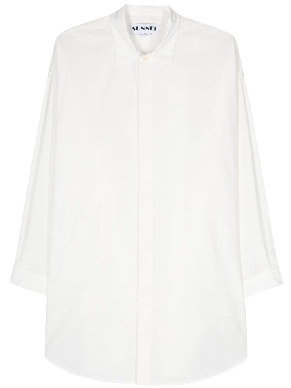 Spice up your wardrobe with the MEGA OVERSIZED SHIRT. This knee-length maxi over shirt is not your average top. With its off-white color and branded SUNNEI tape at the center-back neck, you'll stand out in style wherever you go.