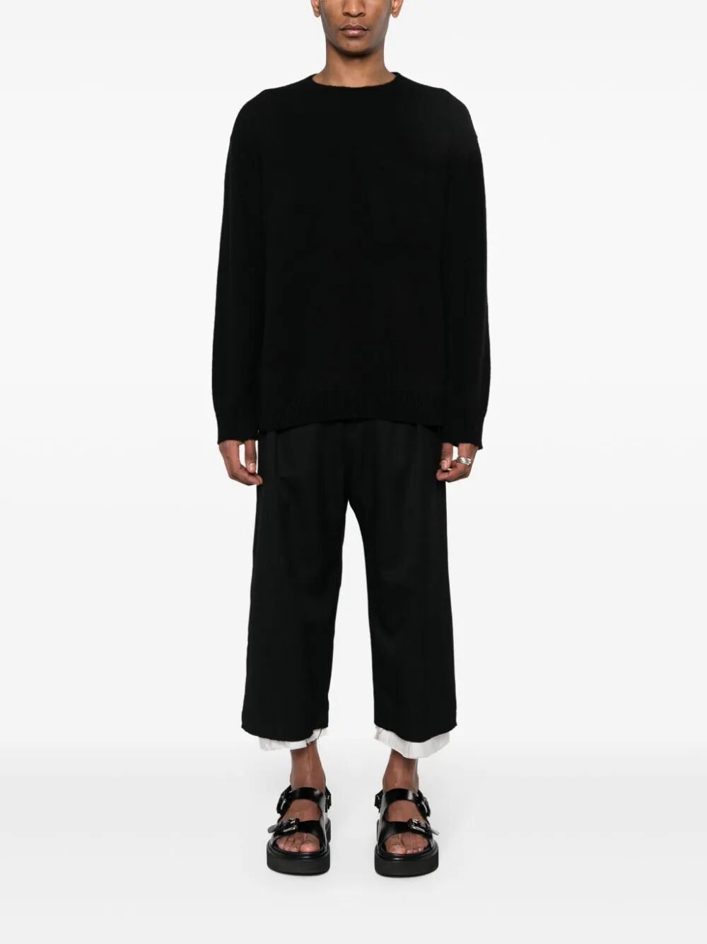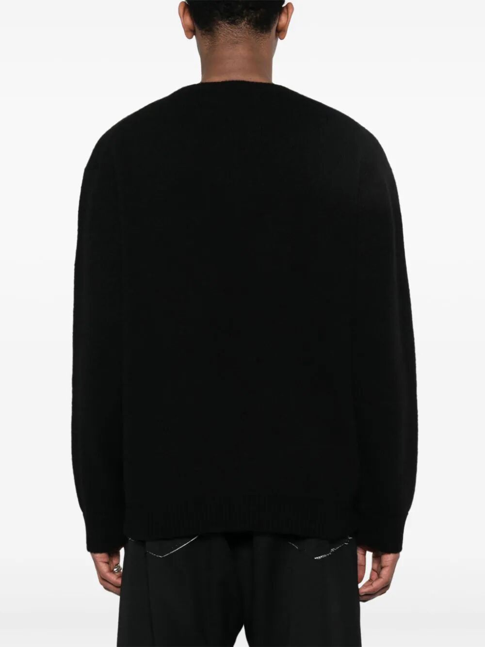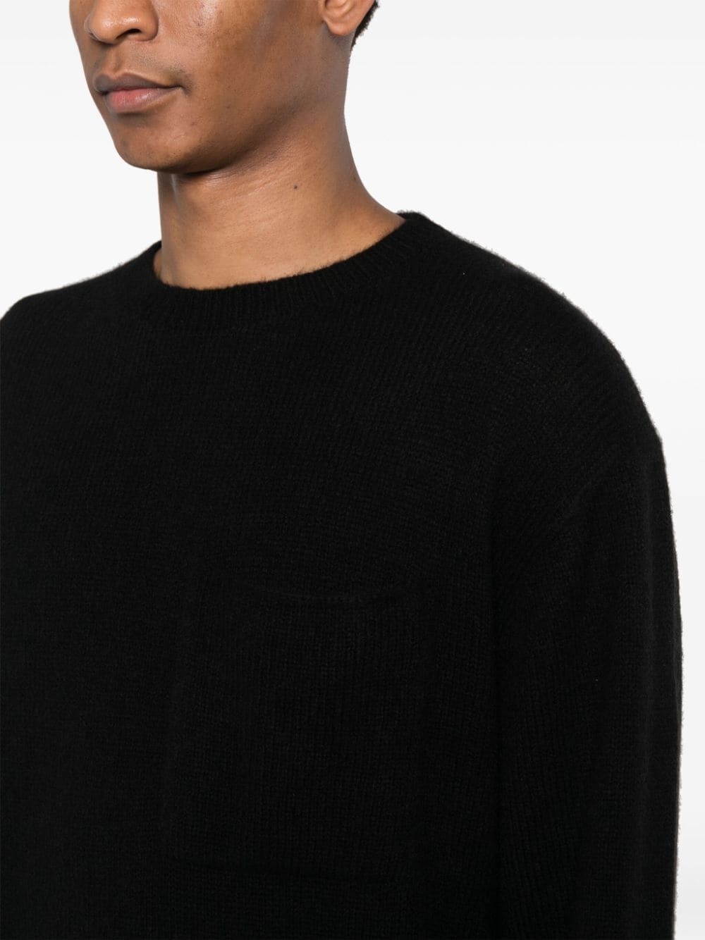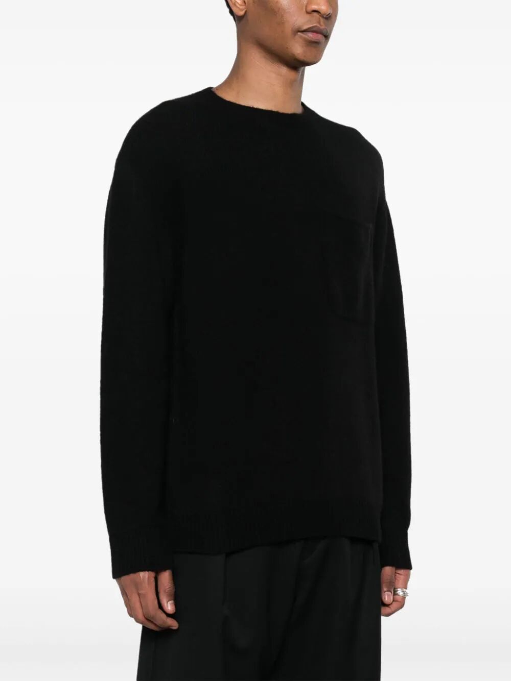 Stay warm and stylish with the Nimbus knitted jumper. Made with a soft, cotton-cashmere blend and designed with a brushed finish, this black jumper features a crew neck, chest patch pocket, and drop shoulder for a relaxed fit. Complete with ribbed cuffs and hem, this long-sleeved jumper is a must-have for any wardrobe.