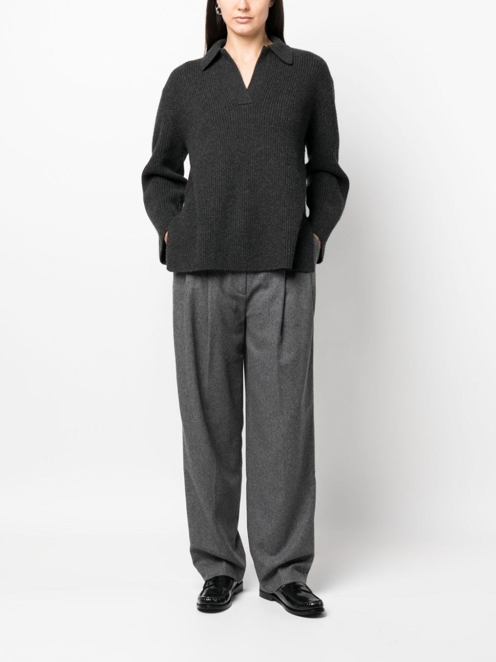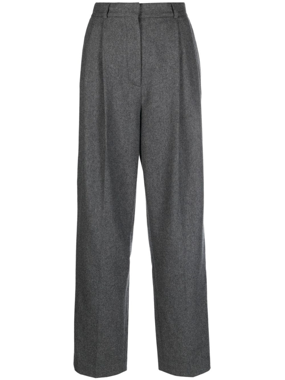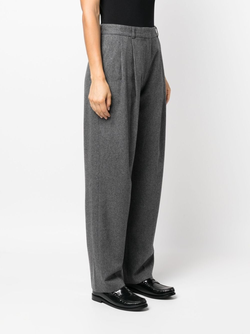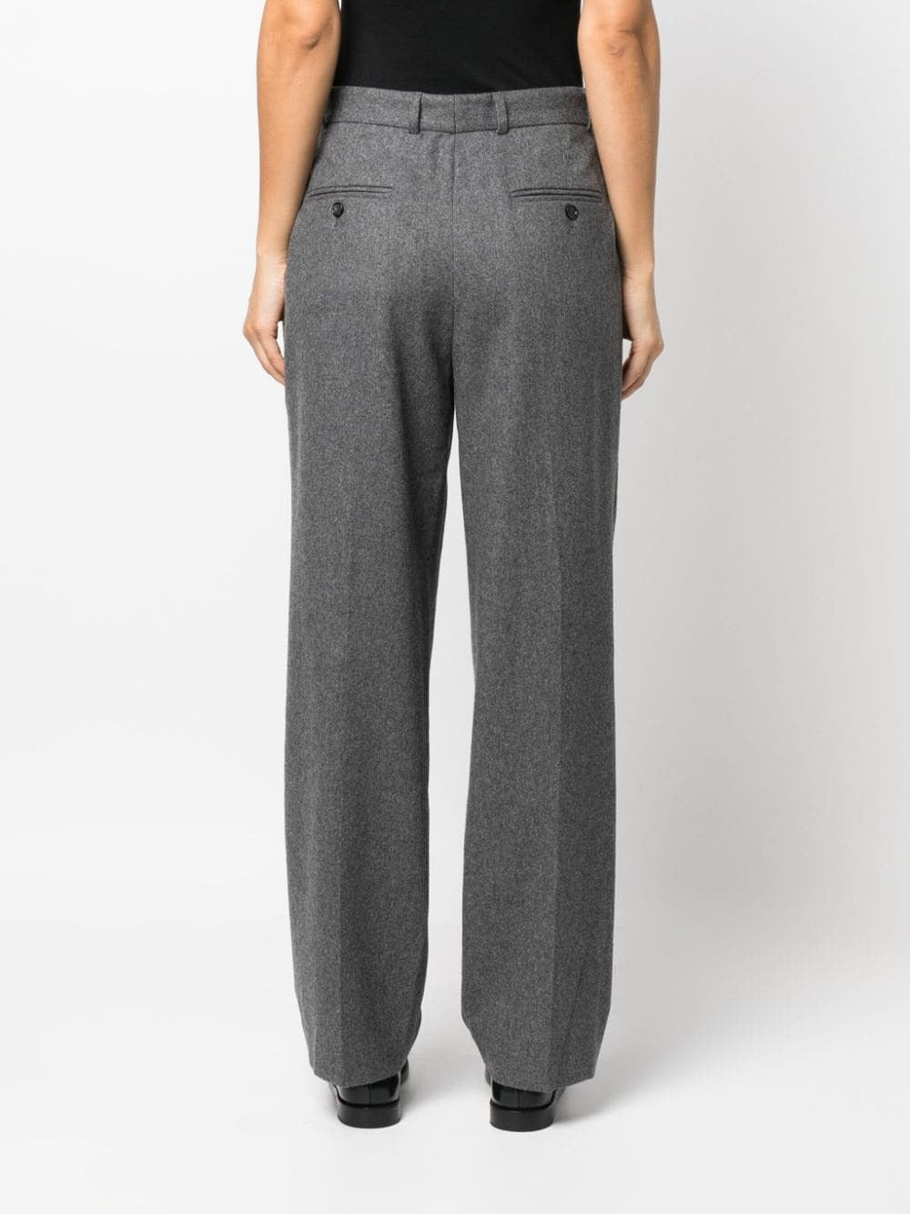 Introducing our Double-Pleated Tailored Trousers, made from a recycled wool blend for a mélange effect. With a low-rise fit, belt loops, and zip fly fastening, these trousers are both stylish and sustainable. Featuring pleat detailing, two inset pockets, and two rear jetted pockets, complete with a straight leg for a classic look.