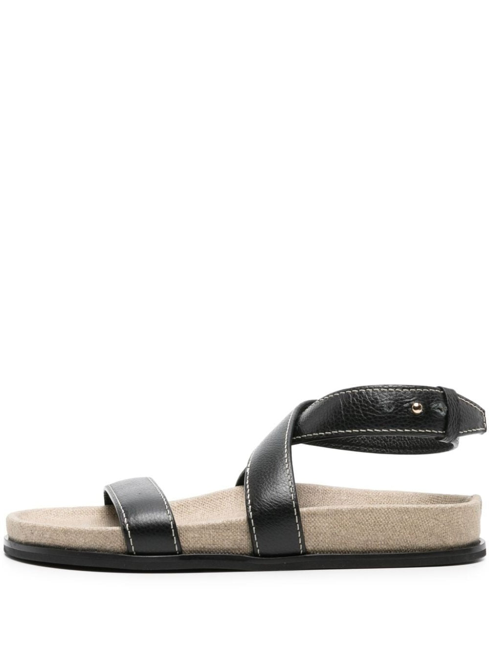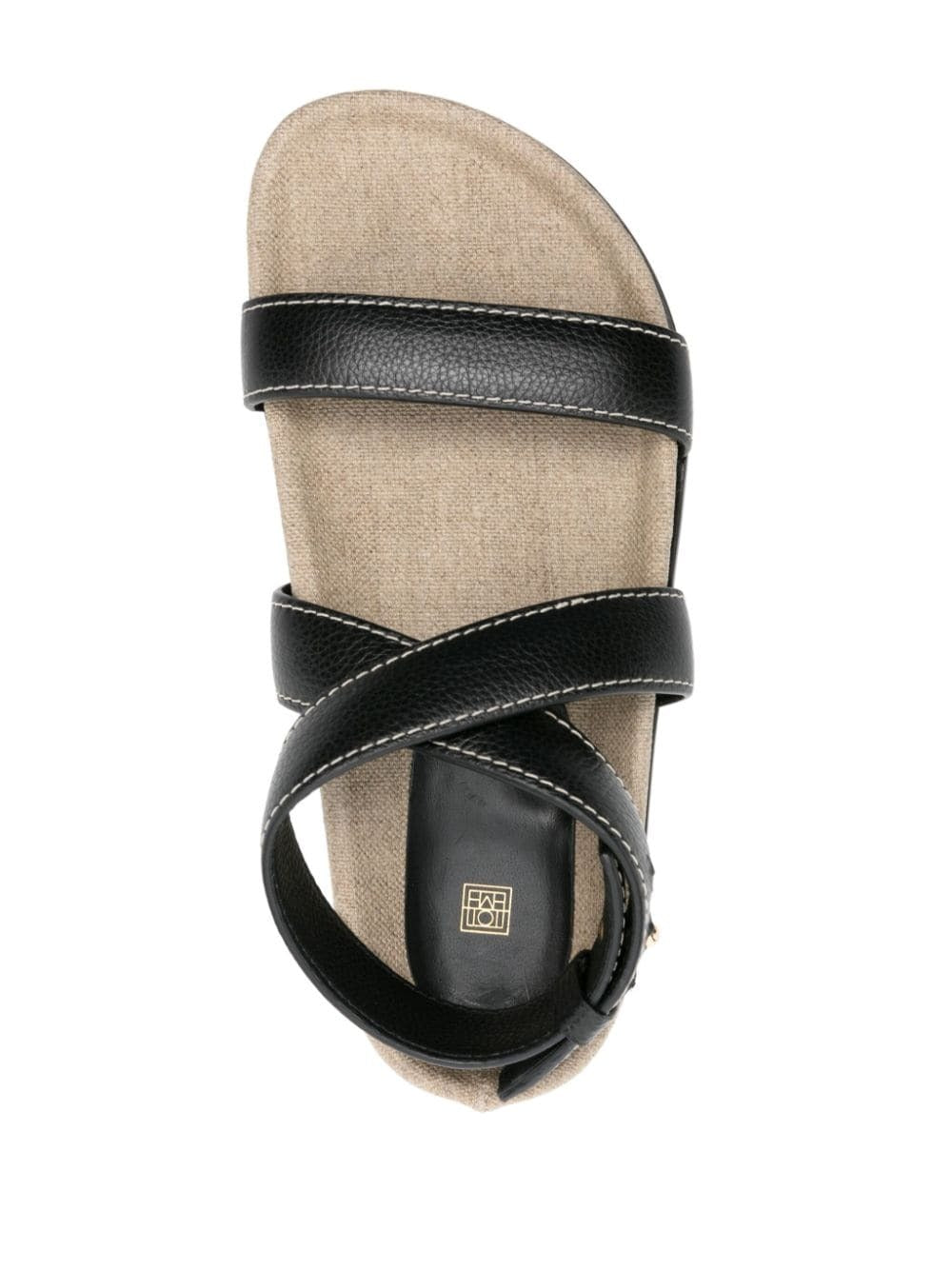 Step out in style with the LEATHER CHUNKY SANDAL by toteme. These Black Ankle Strap Sandals are both fashionable and comfortable, perfect for any occasion. With a chunky heel and ankle strap, these sandals provide both support and style. Available in black and beige color.