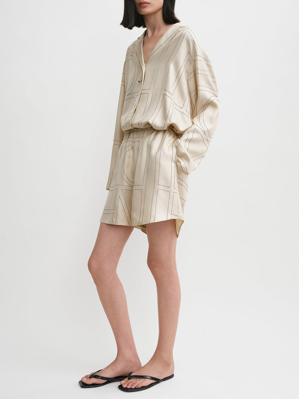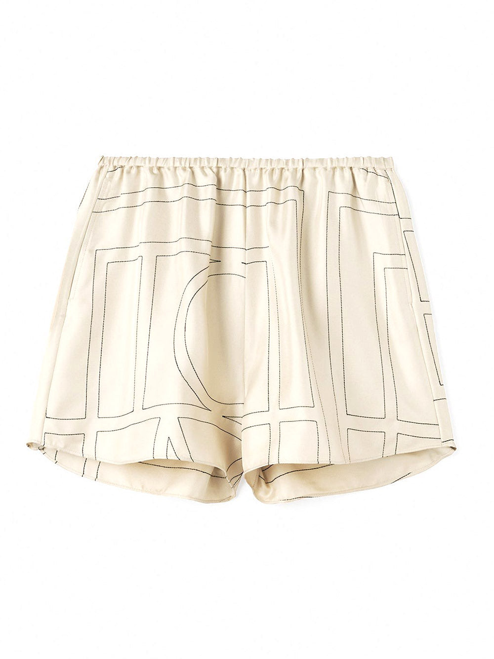 Unwind in style with these Monogram silk pj shorts from TOTEME. Made from lightweight, fluid silk twill, these shorts feature contrasting black monogram embroidery for a touch of elegance. The relaxed, straight-leg silhouette, elasticated waist, and side pockets make them perfect for lounging. Pair with the coordinating top or a simple tank for a chic look. (Note: the position of the monogram may vary from pictures.) Available in avory color.