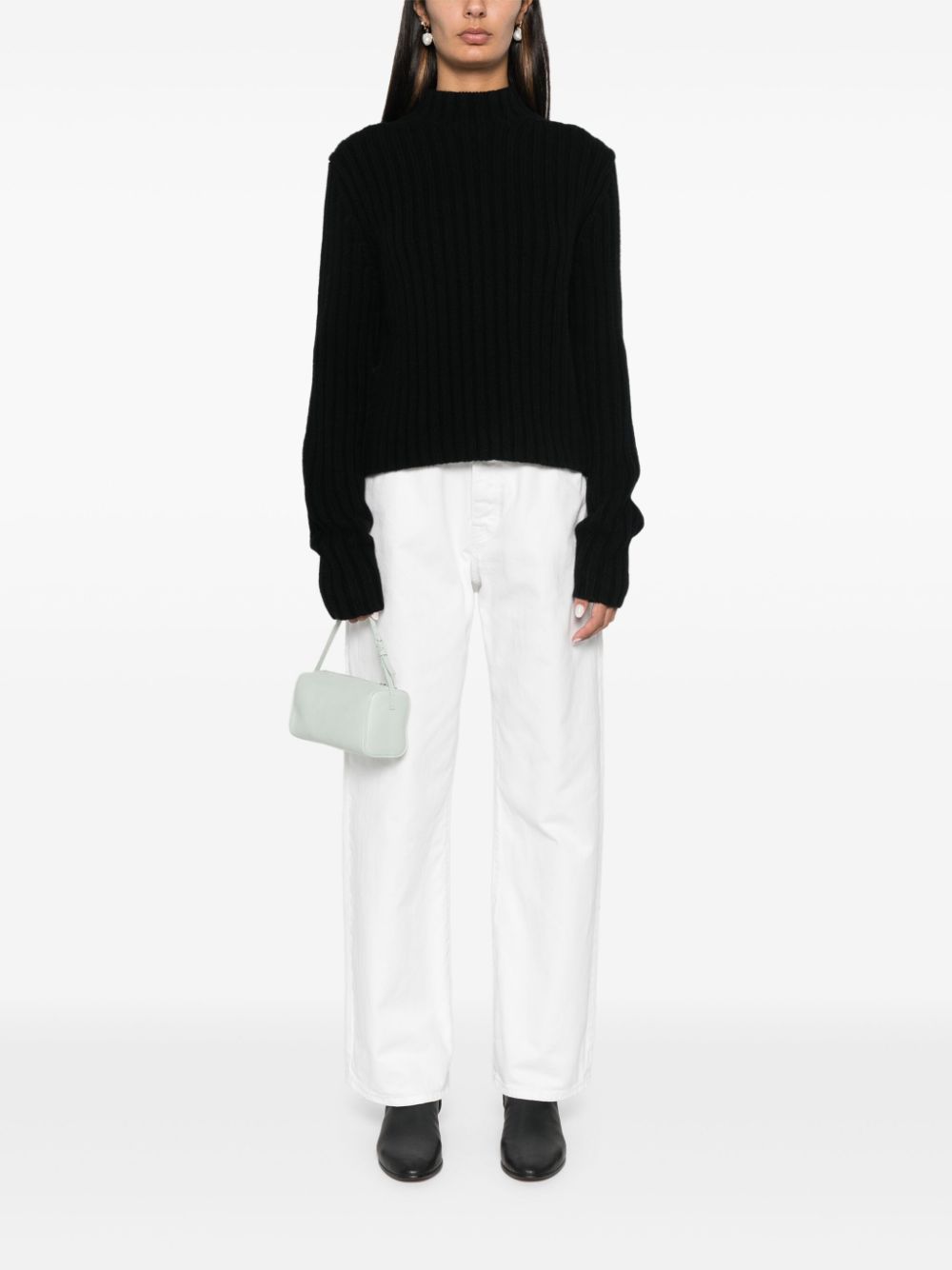 Get cozy and warm in our Petite Chunky Rib Knit sweater. Made with chunky ribbed knit in a sleek black color, this sweater is perfect for chilly days. Stay stylish and snug with this must-have piece.