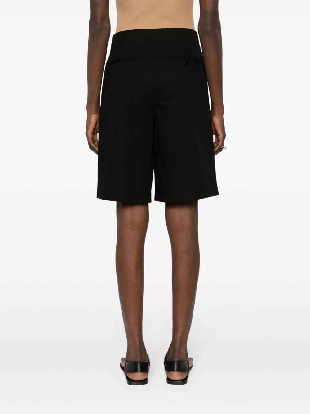Experience ultimate comfort and style with Toteme's black cotton twill shorts. These relaxed-fit shorts feature belt loops, a button and zip fly, side pockets, double front pleats, and back buttoned welt pockets. Perfect for any casual or dressy occasion.
