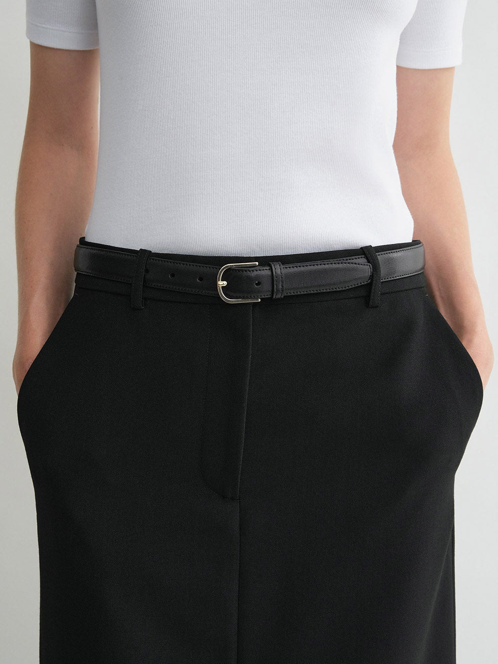 Slim leather trouser belt