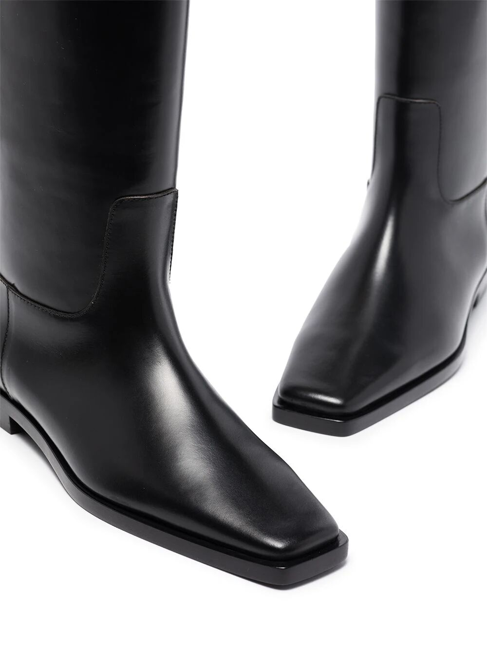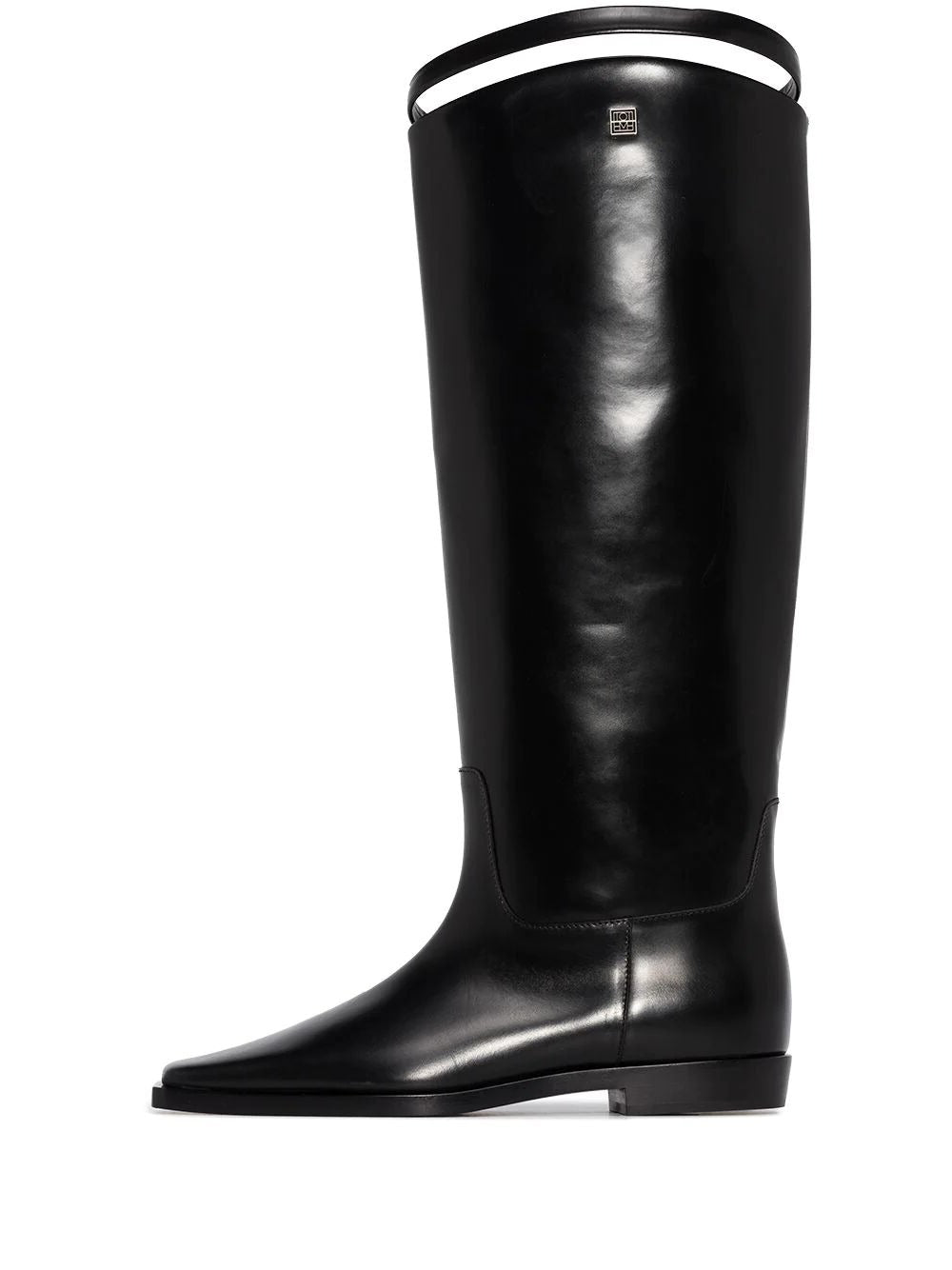 Step up your boot game with these TOTEME square-toe strap riding boots. Made in Italy from soft leather, their contemporary square toe and strap detail add a modern twist to the classic knee-high silhouette. Embrace understated refinement and timeless style. Available in black.