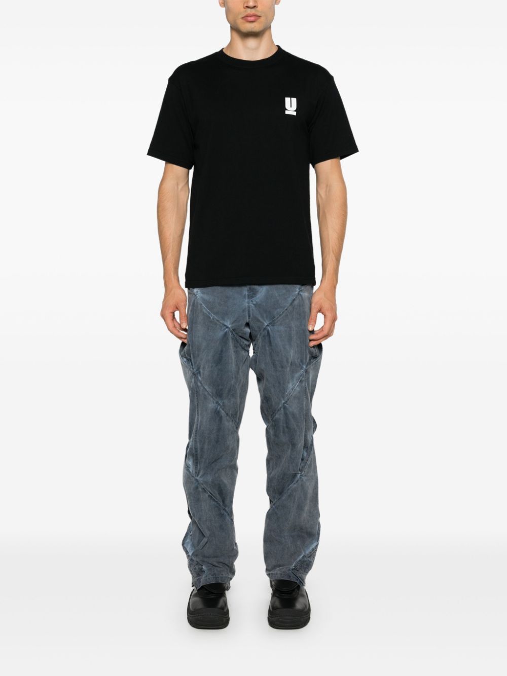 Undercover is a Japanese fashion brand founded by designer Jun Takahashi in 1993, known for its avant-garde, often rebellious approach to streetwear and high fashion. The brand blends elements of punk, goth, and pop culture with high-end tailoring, creating a unique fusion of styles that challenge traditional fashion norms. Undercover is celebrated for its innovative designs, bold graphics, and distinctive prints, often conveying a deep narrative or cultural reference in each collection. The brand's aesthetic is characterized by its juxtaposition of darkness and light, combining edgy, deconstructed pieces with refined, elegant details. Undercover pushes the boundaries of creativity, often experimenting with unconventional materials and techniques, while maintaining an emphasis on craftsmanship and quality. With a loyal following among fashion-forward individuals, Undercover has solidified its position as a pioneering force in both the streetwear and luxury fashion scenes.