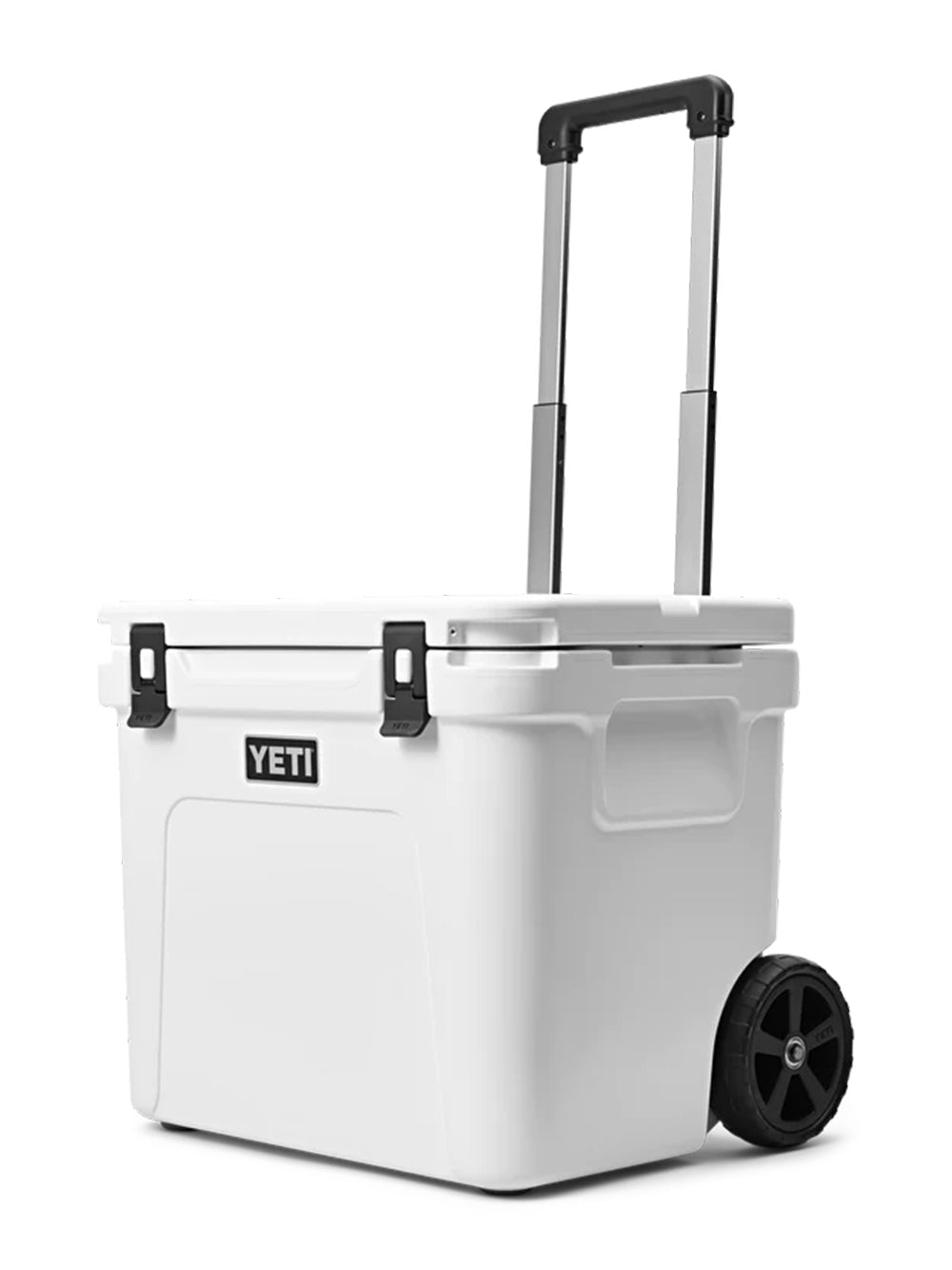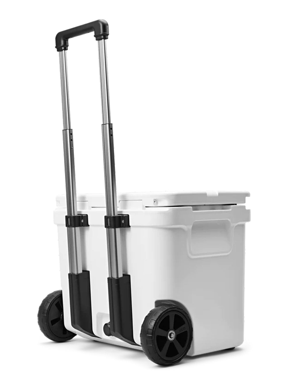 Introducing the Roadie 60, the ultimate cooler for all your adventures! With features like PERISCOPE™ Handle, NEVERFLAT™ WHEELS, LIPGRIP™, and non-slip BEARFOOT™ feet, this cooler is not only convenient but also virtually indestructible. It also has ANCHORPOINT™ tie down system and PERMAFROST™ insulation for maximum temperature control. Don't leave for your next trip without it. Available in white.